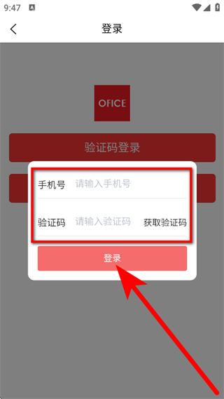 4、输入手机号和收到验证码,点击登录,完成登录操作。