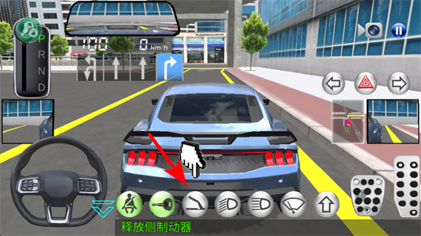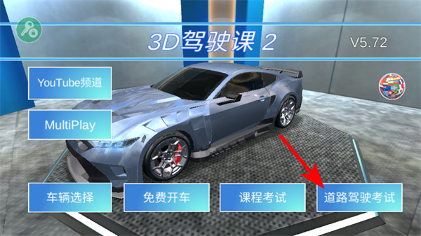 1、在游戏主界面,点击红色箭头指向的道路驾驶考试按钮,即可进入驾驶考试关卡。