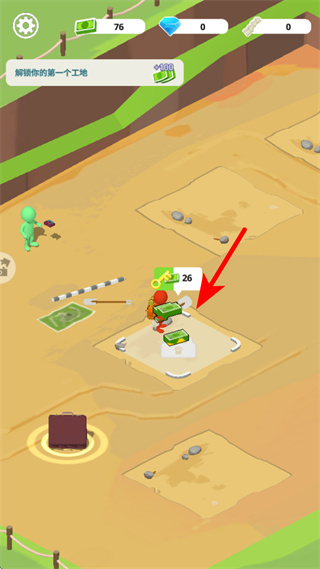2、到达工地后,点击红色箭头指向的资源箱,可获取26个金币,推进任务进度。