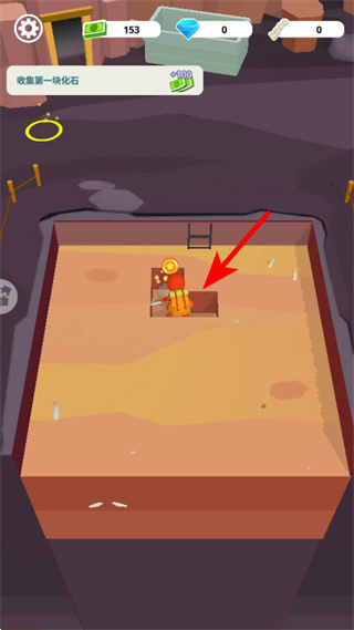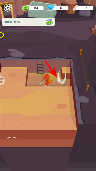 3、进入矿洞后,点击红色箭头指向的矿石区域,开始挖掘矿石,完成收集一块矿石的任务。