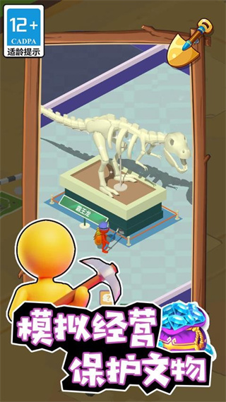 一座濒临废弃的博物馆等待拯救,玩家受命成为新任经营者,面对空空如也的展厅与微薄的收入,开启振兴之路,从组织团队外出挖掘恐龙化石起步,将破碎的化石修复完整并展出,吸引游客到访,再用收益升级场馆、解锁新挖掘区域,一步步将废弃场馆打造成备受欢迎的文化地标。