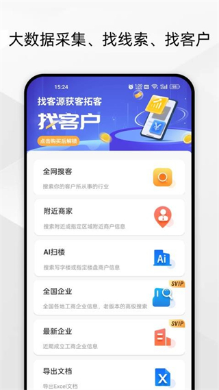 支持将搜索结果一键导出为Excel表格,可智能导入手机通讯录,兼容ExcelTxt等多种文档格式,方便后续整理与跟进,简化客户信息管理流程。
