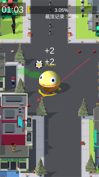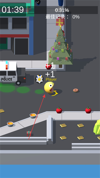 2、操控Player移动,吞噬目标获+2积分,提升进度百分比,推进游戏进程。