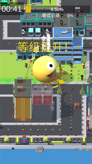 3、等级提升后角色变大,吞噬更多目标,快速增加进度百分比至8.50%。