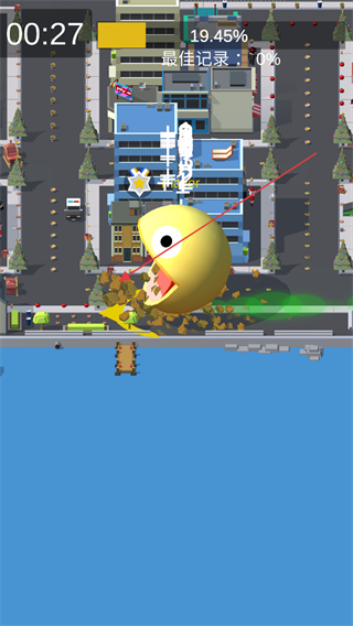 4、操控角色吞噬建筑等目标,进度百分比升至19.45%,在倒计时内提升记录。
