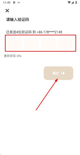 3、在验证码输入框中填写收到的验证码,点击确定完成账号的登录操作。