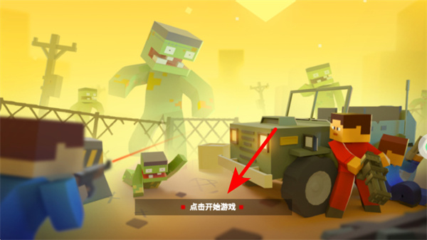 1、在游戏启动界面,点击红色箭头指向的点击开始游戏按钮,即可进入僵尸射击的战斗场景。