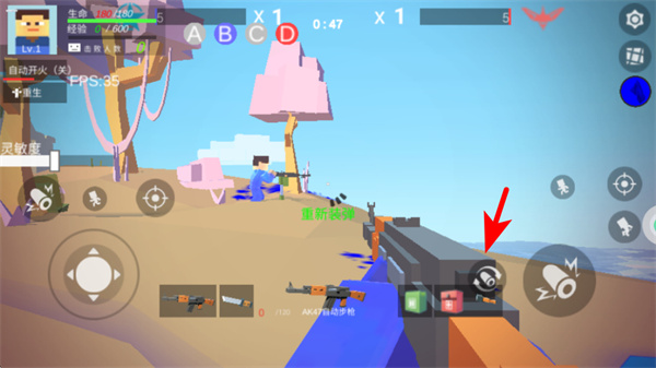 4、当弹药耗尽时,点击红色箭头指向的重新装弹区域,可补充武器弹药,继续战斗。