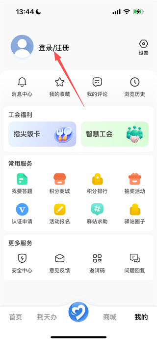 2、在个人中心页面,点击登录注册按钮进入一键登录界面。