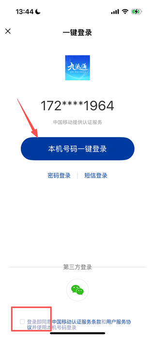 3、在一键登录界面,勾选协议后点击本机号码一键登录按钮完成登录操作。