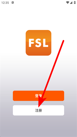 2、在显示FSL标识的页面,点击注册,进入注册页面。