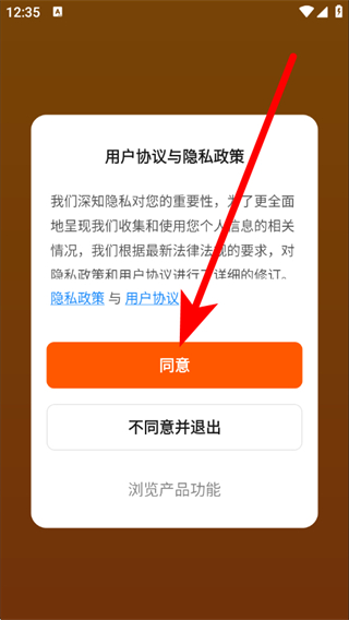 1、在用户协议和隐私政策弹窗中,点击同意,进入页面。