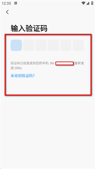 4、在输入验证码页面,将收到的验证码填入对应输入框,完成验证步骤。