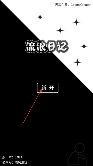 1、进入流浪日记启动界面后,点击新开按钮,即可开启该游戏的全新游玩进程。