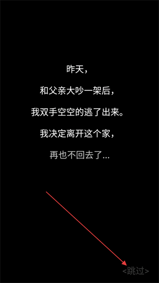 3、进入游戏剧情展示界面后,点击跳过按钮,能快速略过剧情内容进入游戏主流程。
