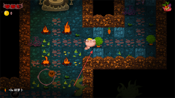 3、继续移动角色,收集更多胡萝卜,达成3根的收集目标。