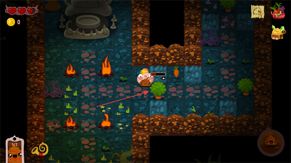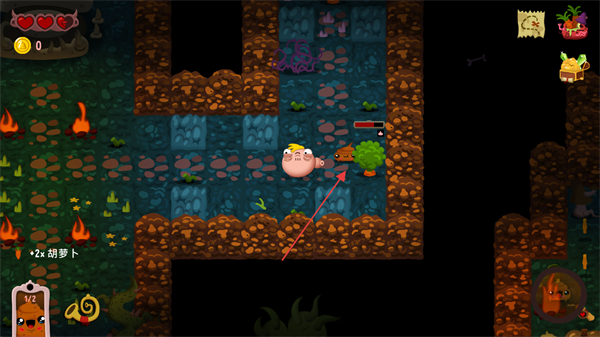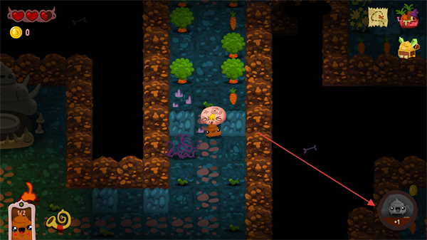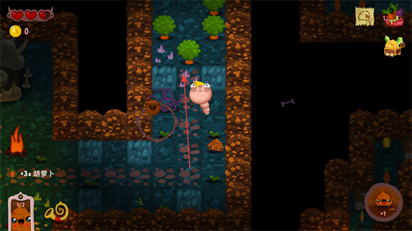 3、操控角色向上移动,收集胡萝卜,同时探索上方区域的新内容。