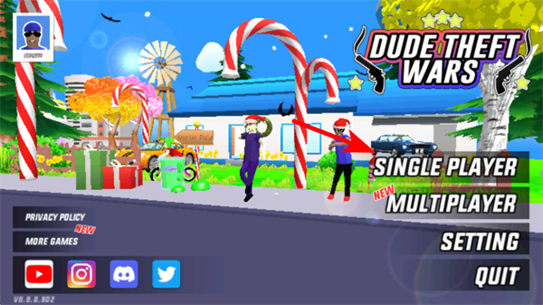 1、在游戏主界面,点击红色箭头指向的SINGLE PLAYER按钮,进入单人模式开始游戏。