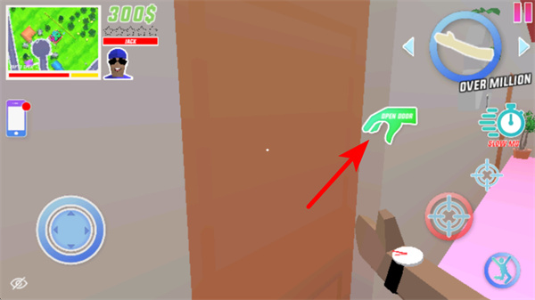 3、遇到门时,点击红色箭头指向的OPEN DOOR提示区域,可打开房门进入下一个场景。