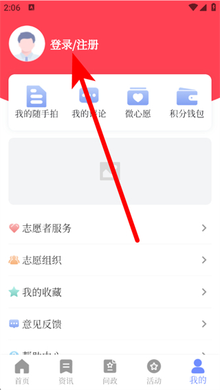 2、在我的页面,点击登录注册,进入登录相关页面。