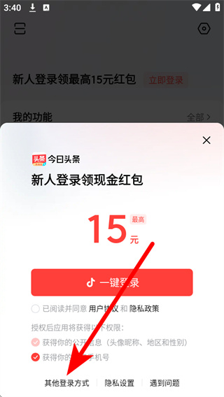 3、页面弹出弹窗后,先勾选相关协议,再点击弹窗中的其他登录方式。