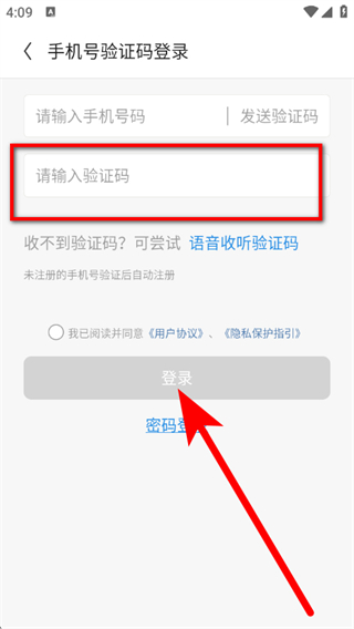 4、在手机号验证码登录页面,输入验证码,点击登录,完成登录。