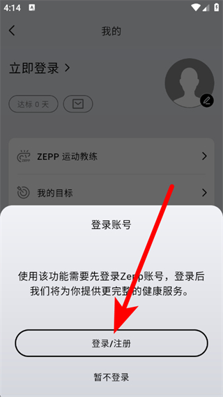 2、在我的页面,点击立即登录选项,触发登录相关弹窗。