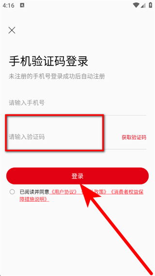 4、在输入框,输入验证码,勾选相关协议后,点击登录,完成登录。