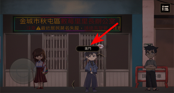 3、切换到新场景后,点击進門这是进入建筑区域的关键步骤,操作后可探索建筑内的新场景、解锁内容。