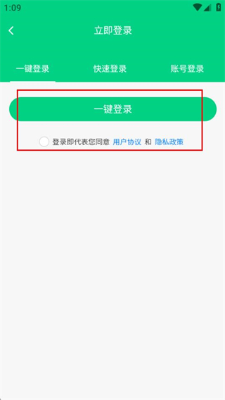 3、在登录页面勾选协议后,点击一键登录完成登录操作。