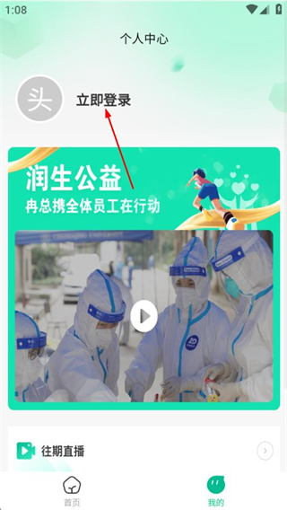 2、在个人中心页面点击立即登录区域,进入登录页面。