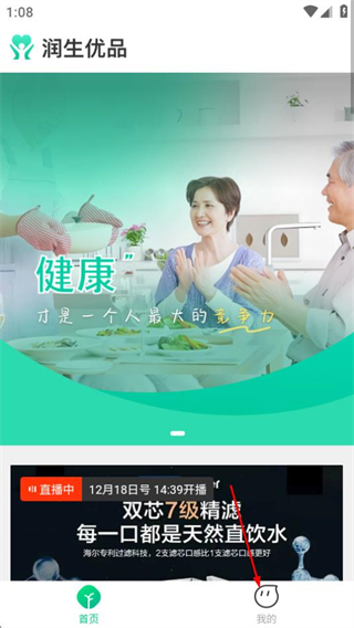 1、在润生优品首页点击我的选项,进入个人中心页面。