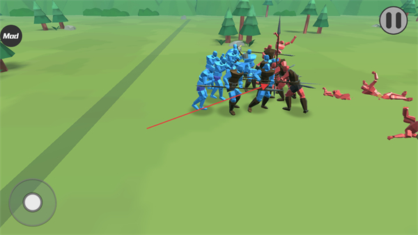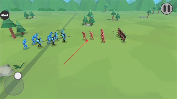 2、操控蓝色士兵向敌方红、黑士兵移动,接近目标触发战斗。