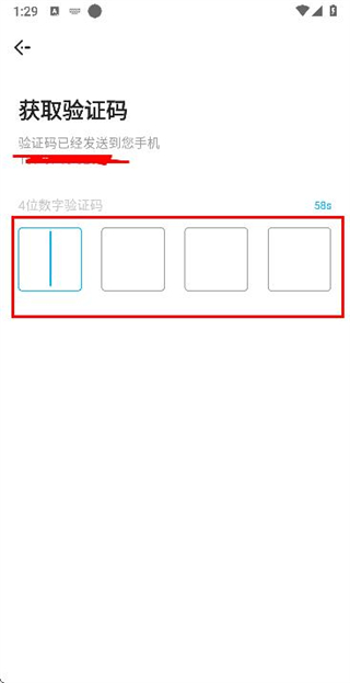 3、在输入短信验证码页面填写收到的验证码,完成账号的登录操作。