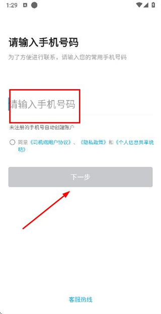 2、在手机登录页面填写手机号,勾选协议后,点击下一步获取验证码。