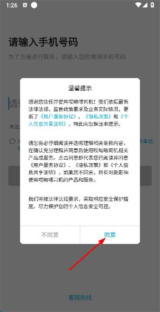 1、在使用协议隐私政策弹窗中点击同意按钮,进入登录页面。