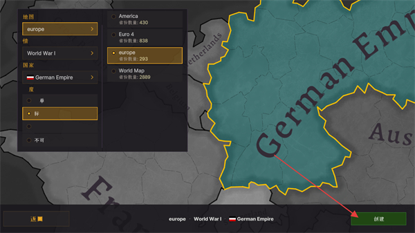 1、选择GermanEmpire势力,点击创建进入对应战局,开启该势力的战争流程。