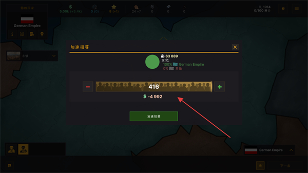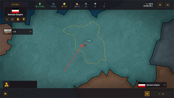 4、兵力招募完成后,界面返回地图,可继续推进GermanEmpire的战略进程。