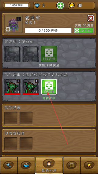 3、在老地牢界面,点击免费扩张解锁空位,消耗资源扩充地牢功能。