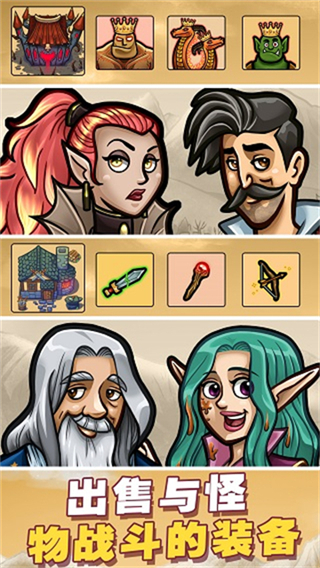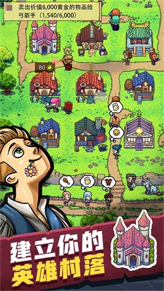 采用色彩明快的卡通画风,城镇建筑错落有致,英雄与怪物造型呆萌可爱,搭配舒缓的背景音乐,营造出轻松惬意的经营冒险氛围。
