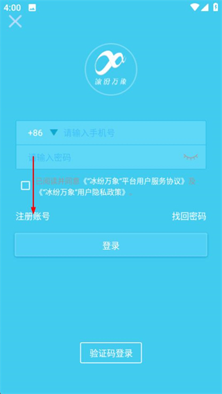 1、在冰纷万象首页点击左上角头像区域,进入登录页面。