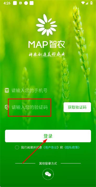 2、在登录页面填写手机号,勾选协议后,点击获取验证码。