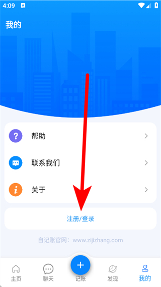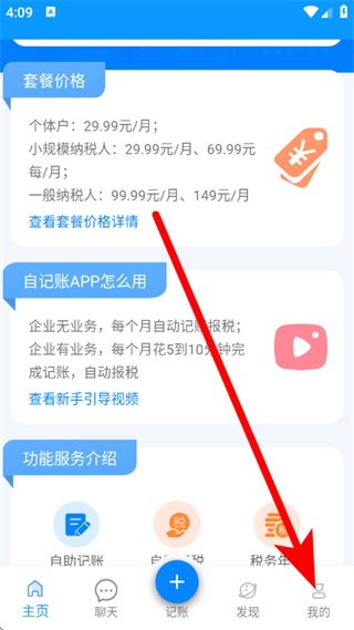1、打开自记账,点击底部的我的,进入个人中心页面。