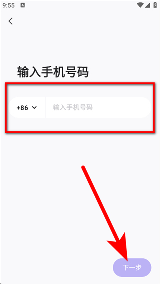 3、在输入手机号码页面,填输入手机号,点击下一步。