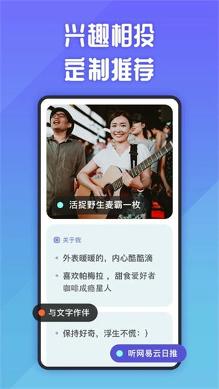 依托多维度用户数据进行深度学习分析,每日精准推荐高质量匹配对象,避免海量滑动的疲劳感,帮助用户快速找到志同道合的人,提升社交效率。