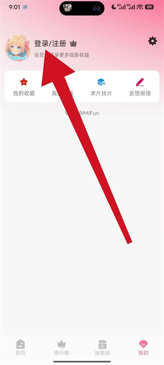 1、打开mifun动漫,在首页底部导航栏点击我的,进入个人页面。