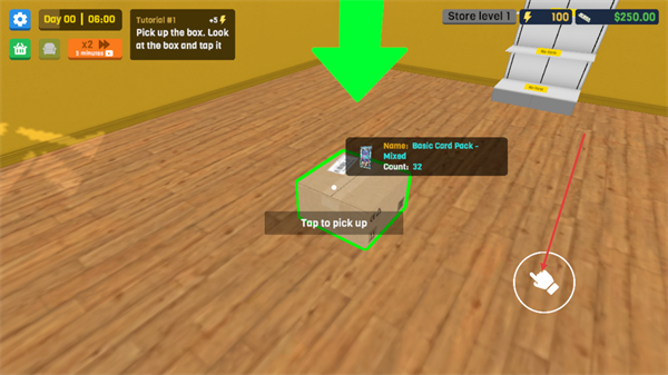 2、在商店内找到目标箱子,按照界面提示Taptopickup点击该箱子,拾取内含32个BasicCardPack的货物箱。