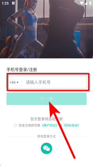 3、在手机号登录注册页面,输入手机号,点击下一步,获取验证码。