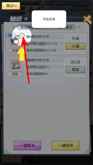 支持学习唱歌、跳舞、搞笑、吸猫等多种表演技能,每位网红最多可同时修习三种能力,针对性提升专业水平,增强不同场景下的吸粉效果。
