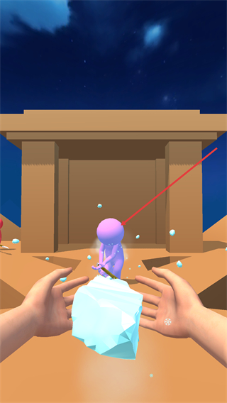 3、将生成的冰体转移至当前场景,点击紫色小人触发攻击,推进剧情的后续发展。